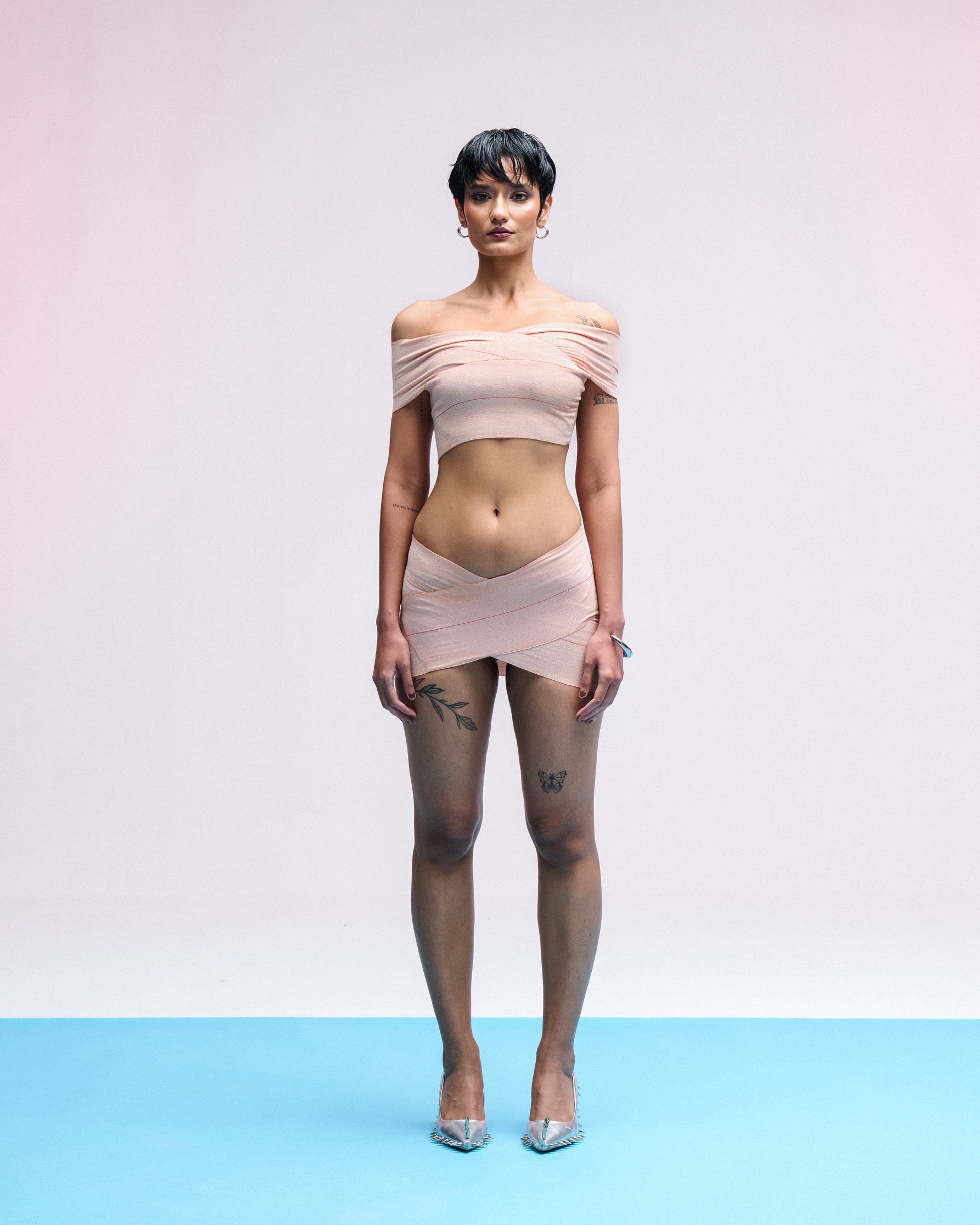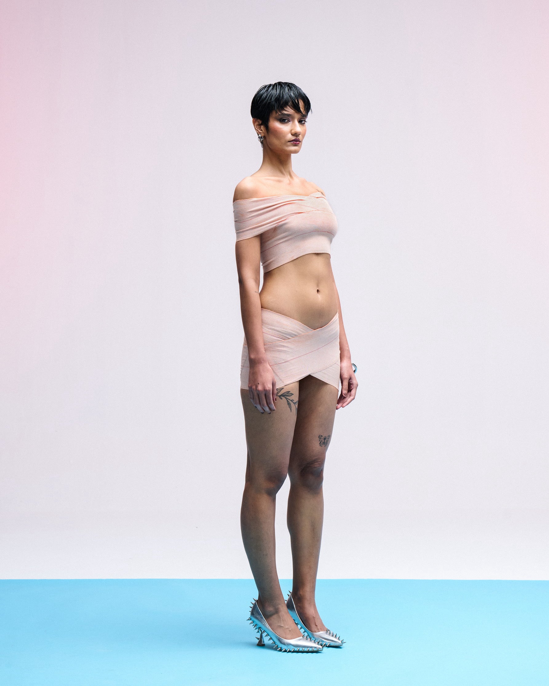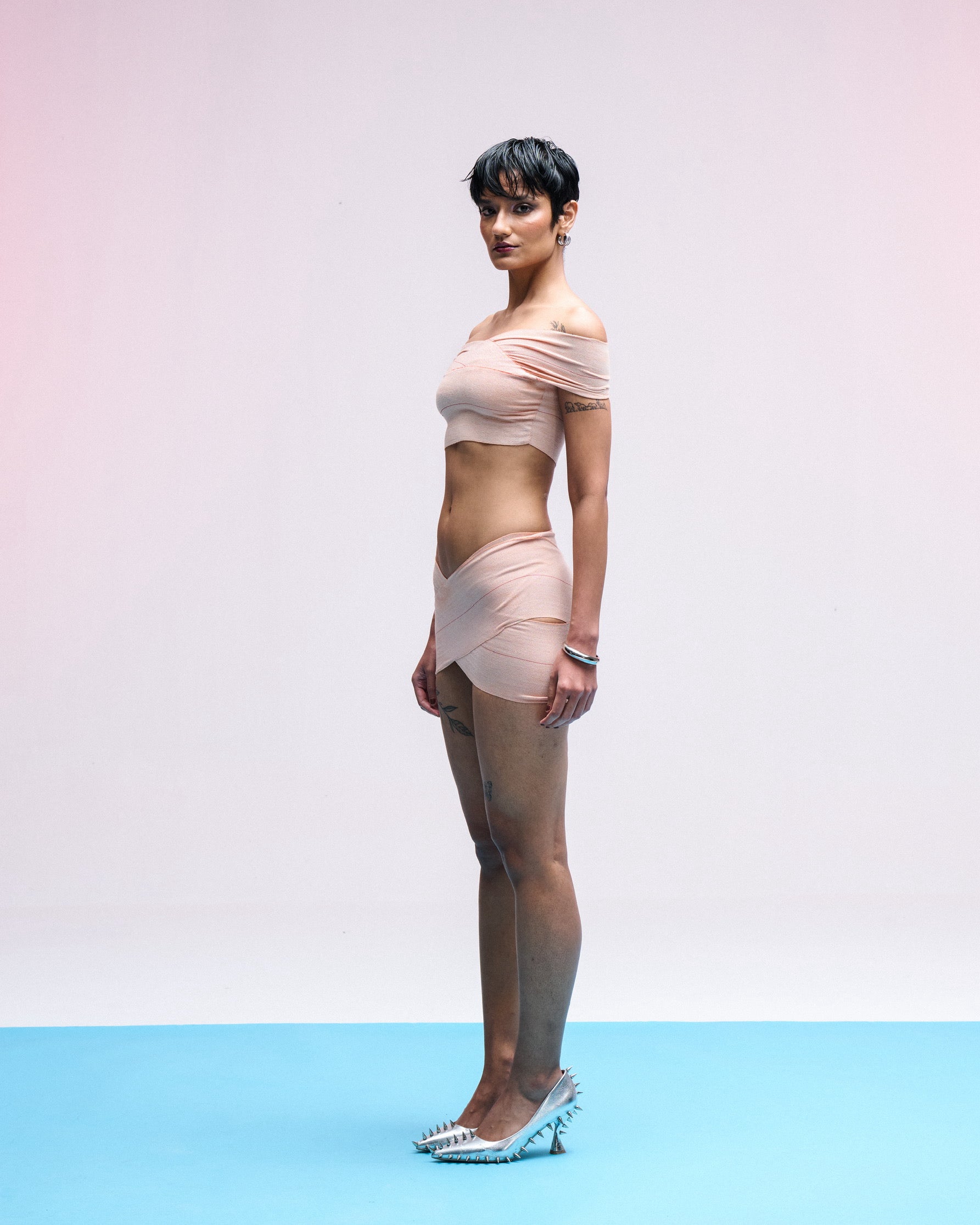 PRODUCT FEATURE + DESCRIPTION : Vulgar believes in pro-choice. Introducing Vulgar Butt Job Skirt. Made with real medical bandages, the skirt strongly condones societal judgement towards body modifications such as butt implants, for one's own pleasure or needs. By amalgamating this idea with fashion, the garment promotes ownership of our bodies. The product has a body-fit silhouette.