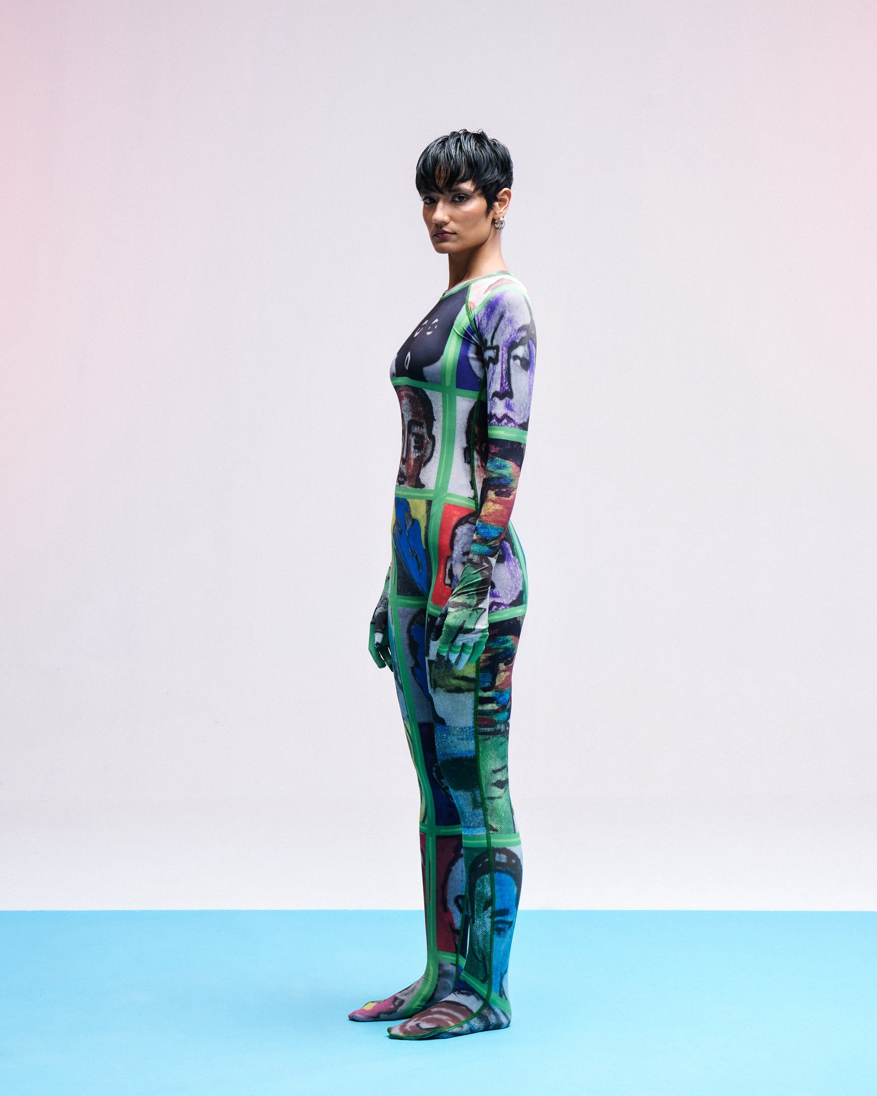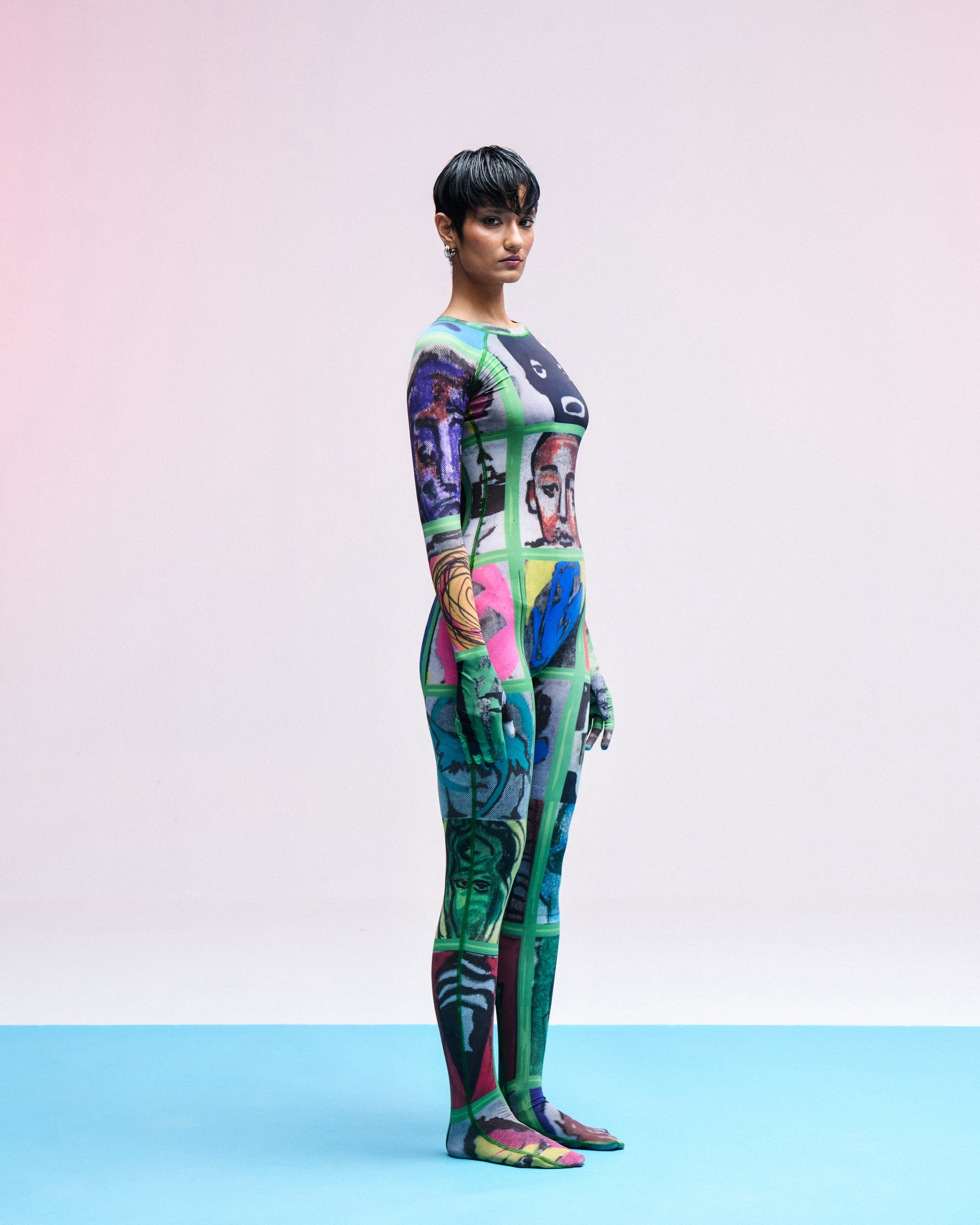 PRODUCT FEATURE + DESCRIPTION : Pokerface on! Introducing Vulgar Multiple Personality Suit. Each face in the artwork represents the intricacies of the human psyche. It depicts how we constantly adjust our behaviour with each human interaction & the internal battle of losing our true identity in order to do so. The product has a body-fit silhouette & the fabric is conscientiously chosen to give maximum ease & comfort.