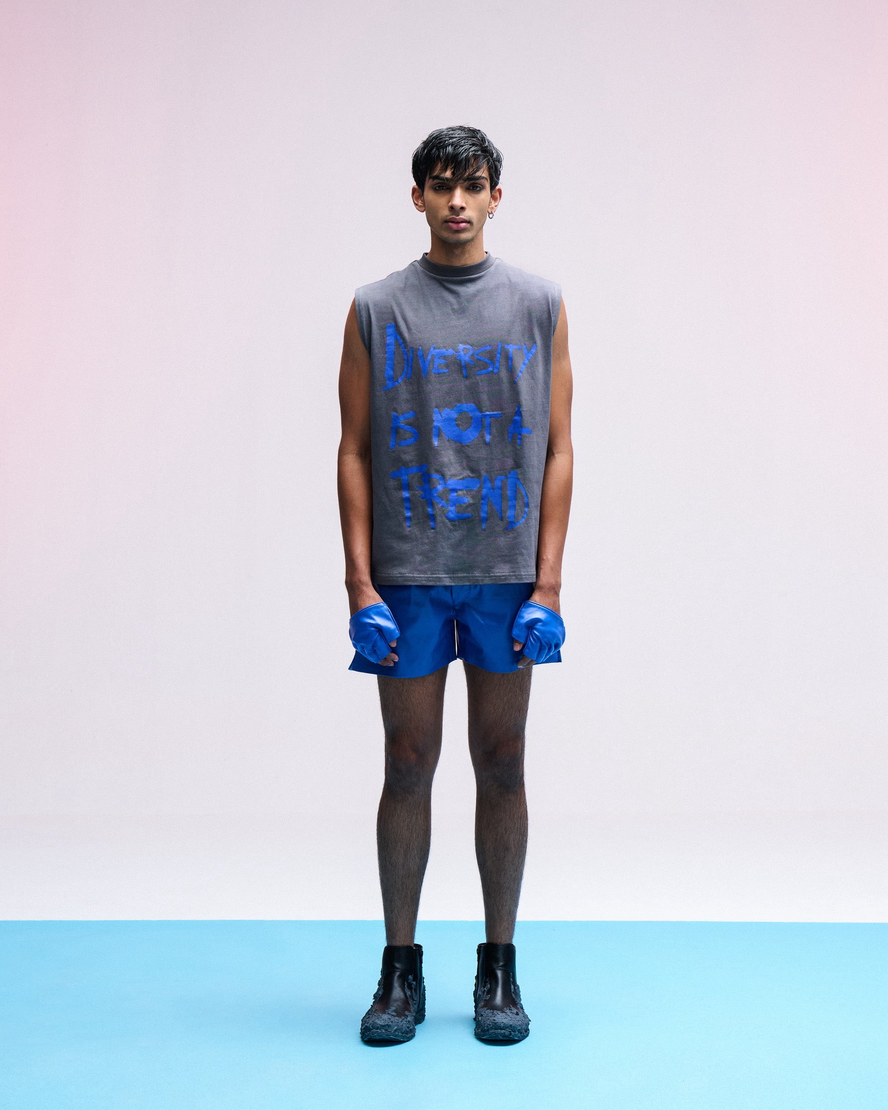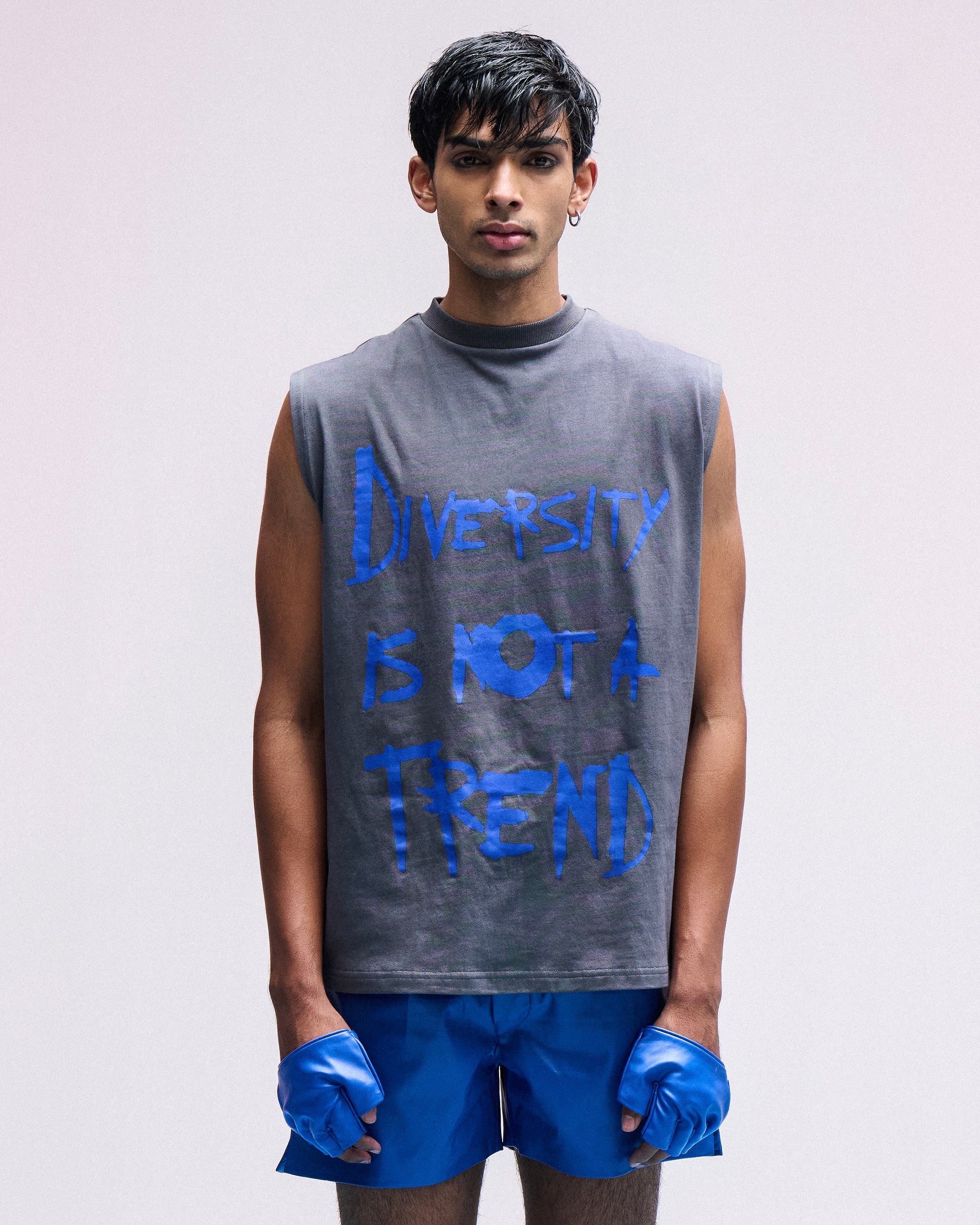 PRODUCT FEATURE + DESCRIPTION : our identity is not a clickbait to capitalise on; the core intention behind Vulgar Diversity T-shirt. The artwork strongly condemns using real peoples' life experiences & struggles, reducing it to a reel to gain traction & views. Individuality is one of the major fundamentals of Vulgar & we're back a with strong clapback slogan to tell the world: diversity is not a trend The artwork is screen printed on 100% premium cotton fabric. The product has an oversized fit.
